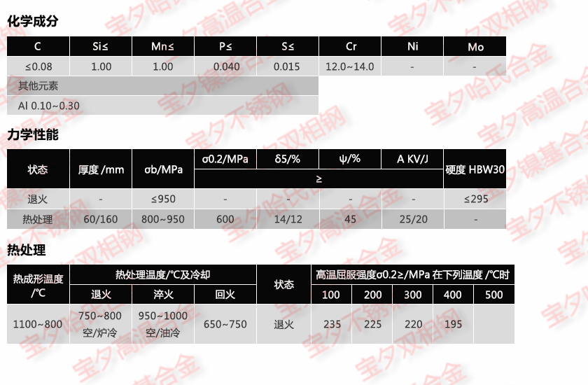 寶鋼X6CrAl13,太鋼X6CrAl13,新日鐵X6CrAl13,日本冶金X6CrAl13,蒂森克虜伯X6CrAl13,奧托昆普X6CrAl13,日本神戶X6CrAl13