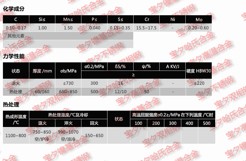 寶鋼X14CrMoS17,太鋼X14CrMoS17,新日鐵X14CrMoS17,日本冶金X14CrMoS17,蒂森克虜伯X14CrMoS17,奧托昆普X14CrMoS17,日本神戶X14CrMoS17
