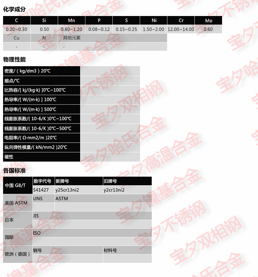 寶鋼Y25Cr13Ni2,太鋼Y25Cr13Ni2,新日鐵Y25Cr13Ni2,日本冶金Y25Cr13Ni2,蒂森克虜伯Y25Cr13Ni2,奧托昆普Y25Cr13Ni2,日本神戶Y25Cr13Ni2