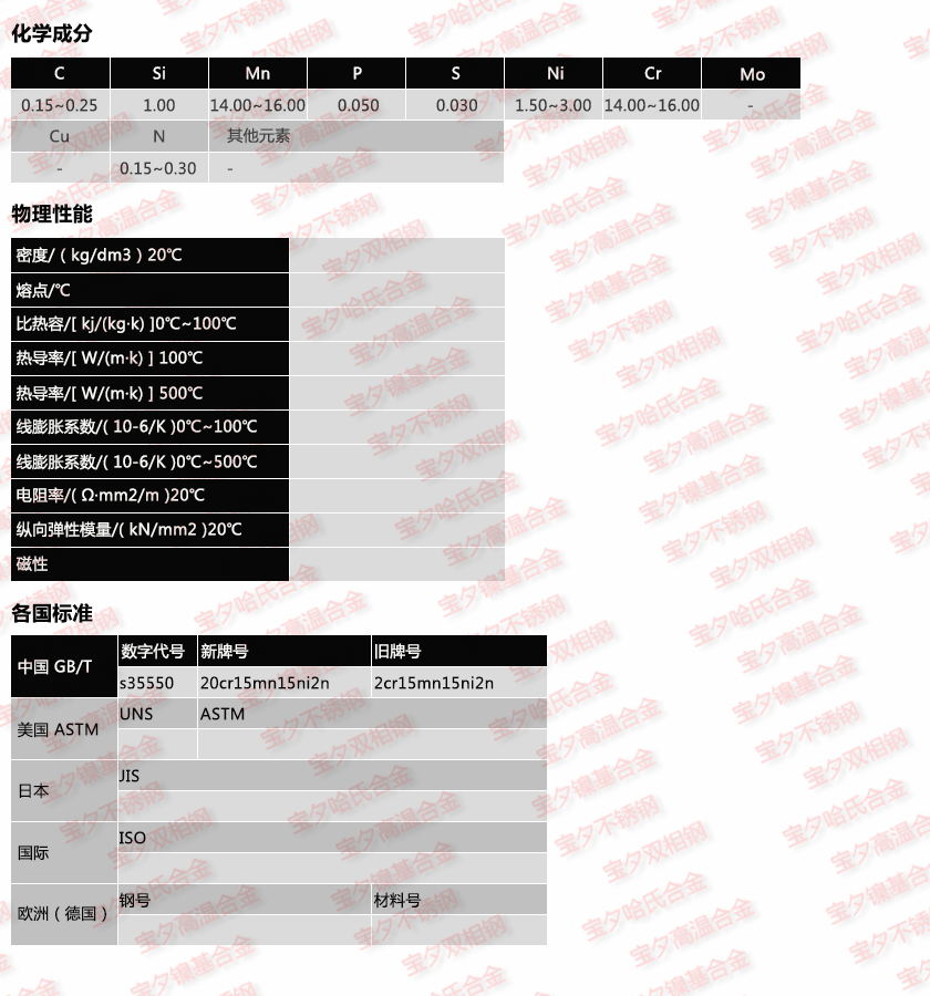 寶鋼20Cr15Mn15Ni2N,太鋼20Cr15Mn15Ni2N,新日鐵20Cr15Mn15Ni2N,日本冶金20Cr15Mn15Ni2N,蒂森克虜伯20Cr15Mn15Ni2N,奧托昆普20Cr15Mn15Ni2N,日本神戶20Cr15Mn15Ni2N
