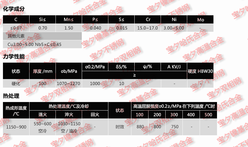寶鋼1.4542,太鋼1.4542,新日鐵1.4542,日本冶金1.4542,蒂森克虜伯1.4542,奧托昆普1.4542,日本神戶1.4542