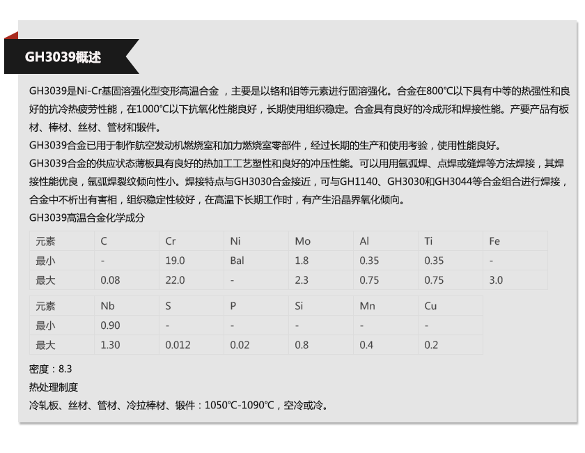 上海歐薩卡集團—GH3039是什么,上海歐薩卡集團—GH3039代理商,上海歐薩卡集團—GH3039廠家直銷