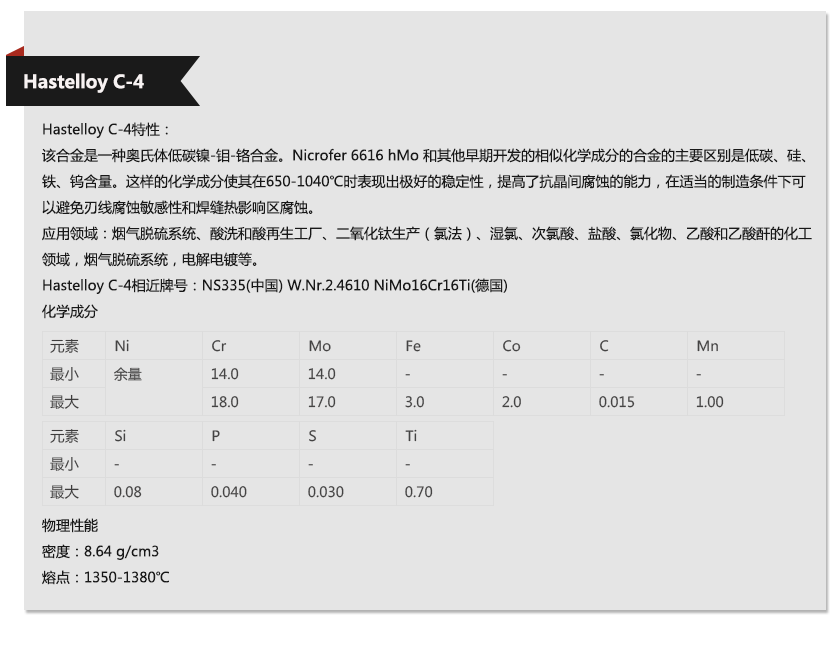 寶鋼Hastelloy C-4,太鋼Hastelloy C-4,新日鐵Hastelloy C-4,日本冶金Hastelloy C-4,蒂森克虜伯Hastelloy C-4,奧托昆普Hastelloy C-4,日本神戶Hastelloy C-4