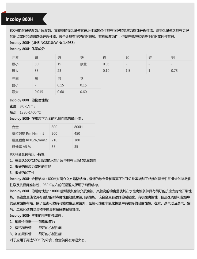 上海歐薩卡集團—lncoloy 800H材質單,上海歐薩卡集團—lncoloy 800H成分表,上海歐薩卡集團—lncoloy 800H是什么材料