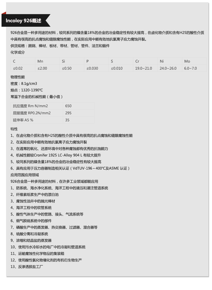 寶鋼lncoloy 926,太鋼lncoloy 926,新日鐵lncoloy 926,日本冶金lncoloy 926,蒂森克虜伯lncoloy 926,奧托昆普lncoloy 926,日本神戶lncoloy 926