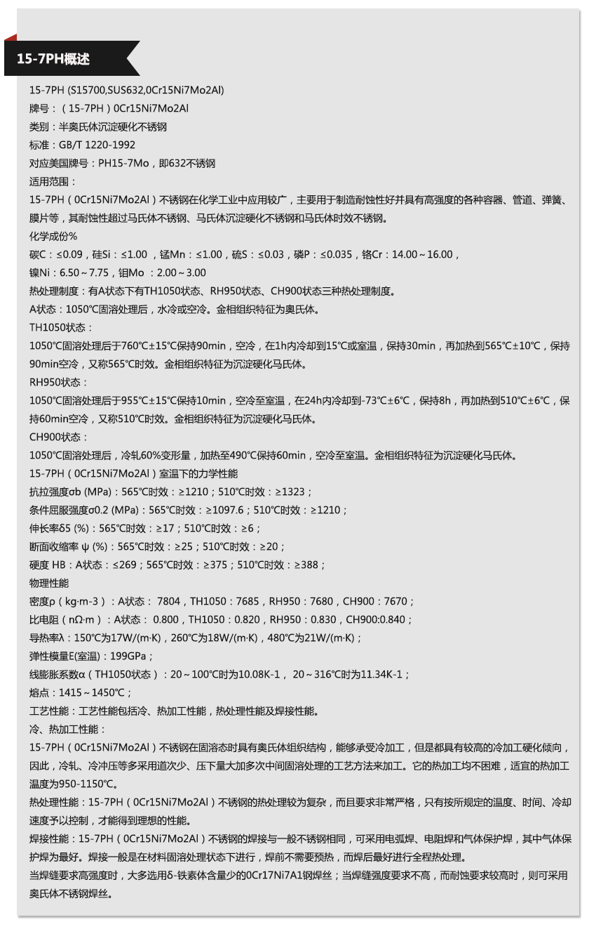 寶鋼15-7PH,太鋼15-7PH,新日鐵15-7PH,日本冶金15-7PH,蒂森克虜伯15-7PH,奧托昆普15-7PH,日本神戶15-7PH