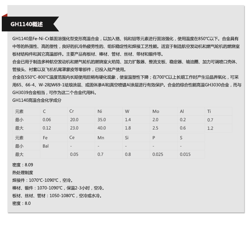 上海歐薩卡集團(tuán)—GH1140材質(zhì)單,上海歐薩卡集團(tuán)—GH1140成分表,上海歐薩卡集團(tuán)—GH1140是什么材料