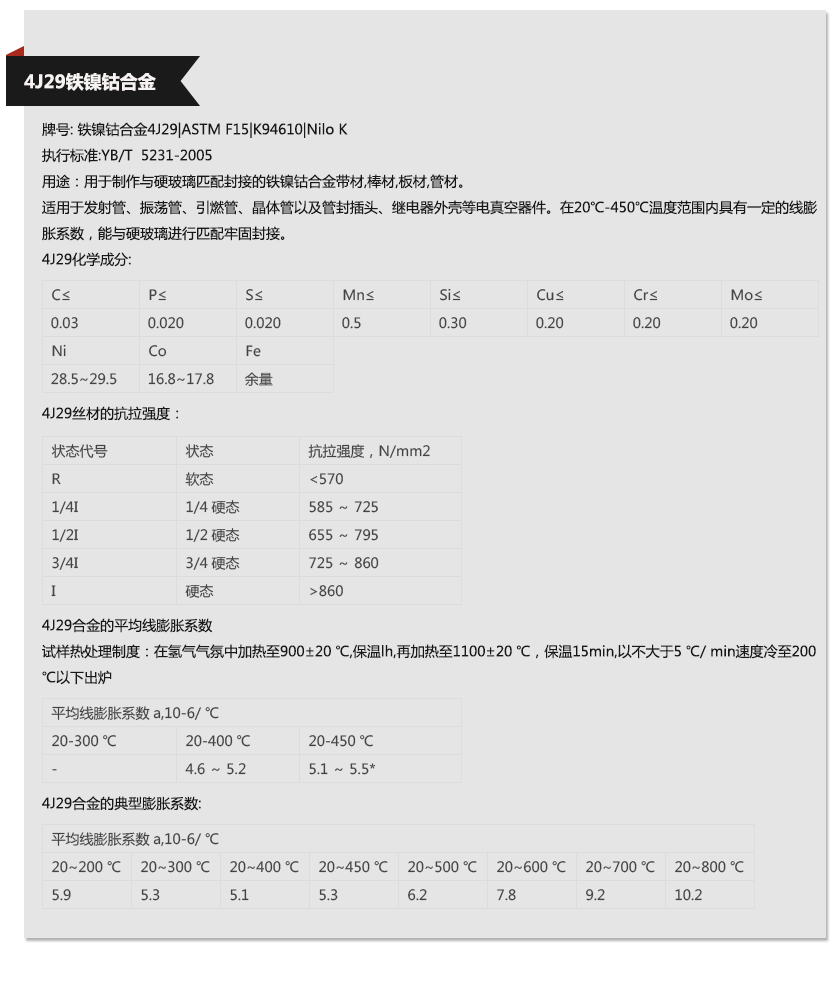 上海歐薩卡集團(tuán)—4J29材質(zhì)單,上海歐薩卡集團(tuán)—4J29成分表,上海歐薩卡集團(tuán)—4J29是什么材料