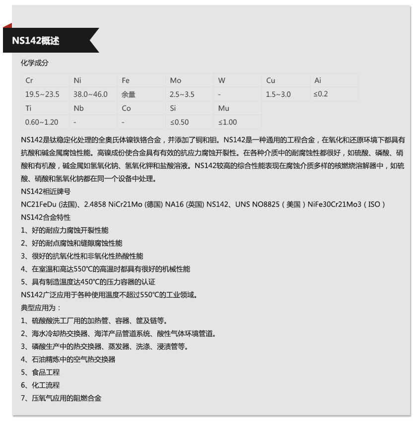 上海歐薩卡集團—NS142材質(zhì)單,上海歐薩卡集團—NS142成分表,上海歐薩卡集團—NS142是什么材料