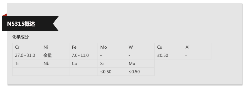 上海歐薩卡集團—NS315材質單,上海歐薩卡集團—NS315成分表,上海歐薩卡集團—NS315是什么材料