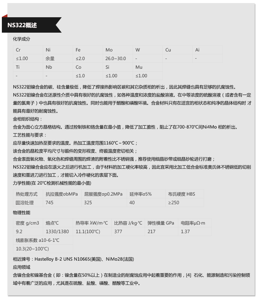 上海歐薩卡集團(tuán)—NS322材質(zhì)單,上海歐薩卡集團(tuán)—NS322成分表,上海歐薩卡集團(tuán)—NS322是什么材料