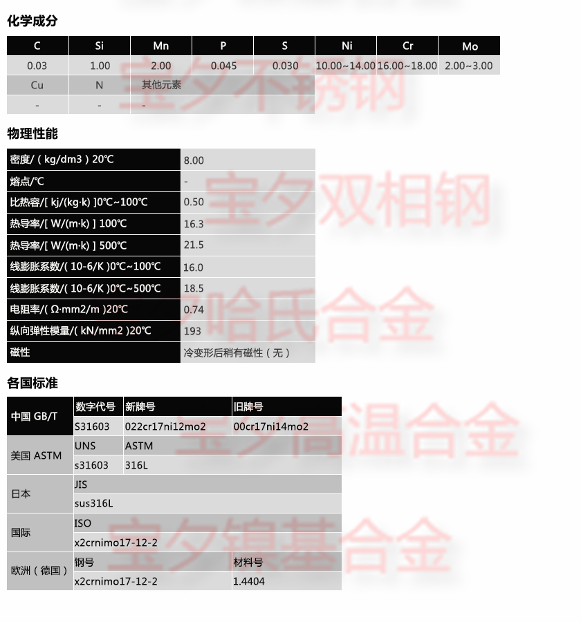 寶鋼S31603,太鋼S31603,新日鐵S31603,日本冶金S31603,蒂森克虜伯S31603,奧托昆普S31603,日本神戶S31603