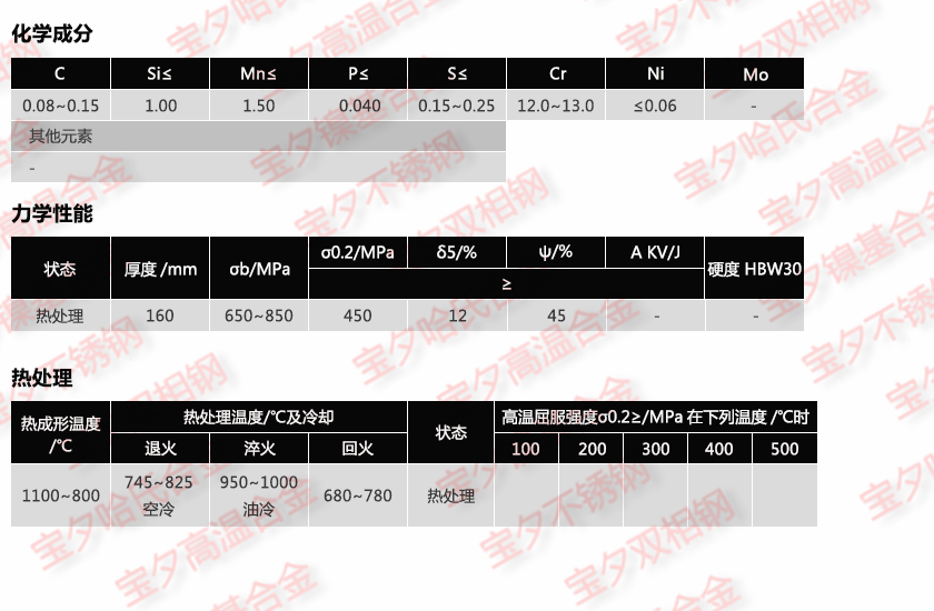 寶鋼1.4005,太鋼1.4005,新日鐵1.4005,日本冶金1.4005,蒂森克虜伯1.4005,奧托昆普1.4005,日本神戶1.4005