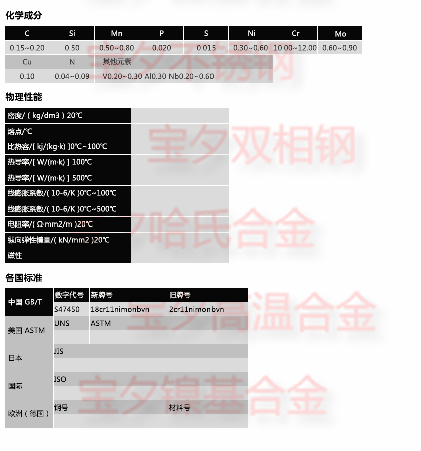 寶鋼2Cr11NiMoNbVN,太鋼2Cr11NiMoNbVN,新日鐵2Cr11NiMoNbVN,日本冶金2Cr11NiMoNbVN,蒂森克虜伯2Cr11NiMoNbVN,奧托昆普2Cr11NiMoNbVN,日本神戶2Cr11NiMoNbVN