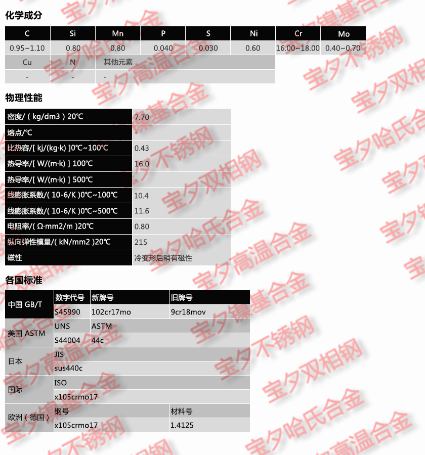 寶鋼102Cr17Mo,太鋼102Cr17Mo,新日鐵102Cr17Mo,日本冶金102Cr17Mo,蒂森克虜伯102Cr17Mo,奧托昆普102Cr17Mo,日本神戶102Cr17Mo